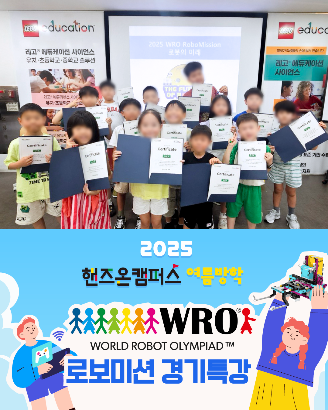 3일간의 2025 핸즈온 여름방학 LEGO® Education WRO 로보미션 특강이 아이들의 열정과 웃음 속에 성공적으로 마무리되었습니다! 👏